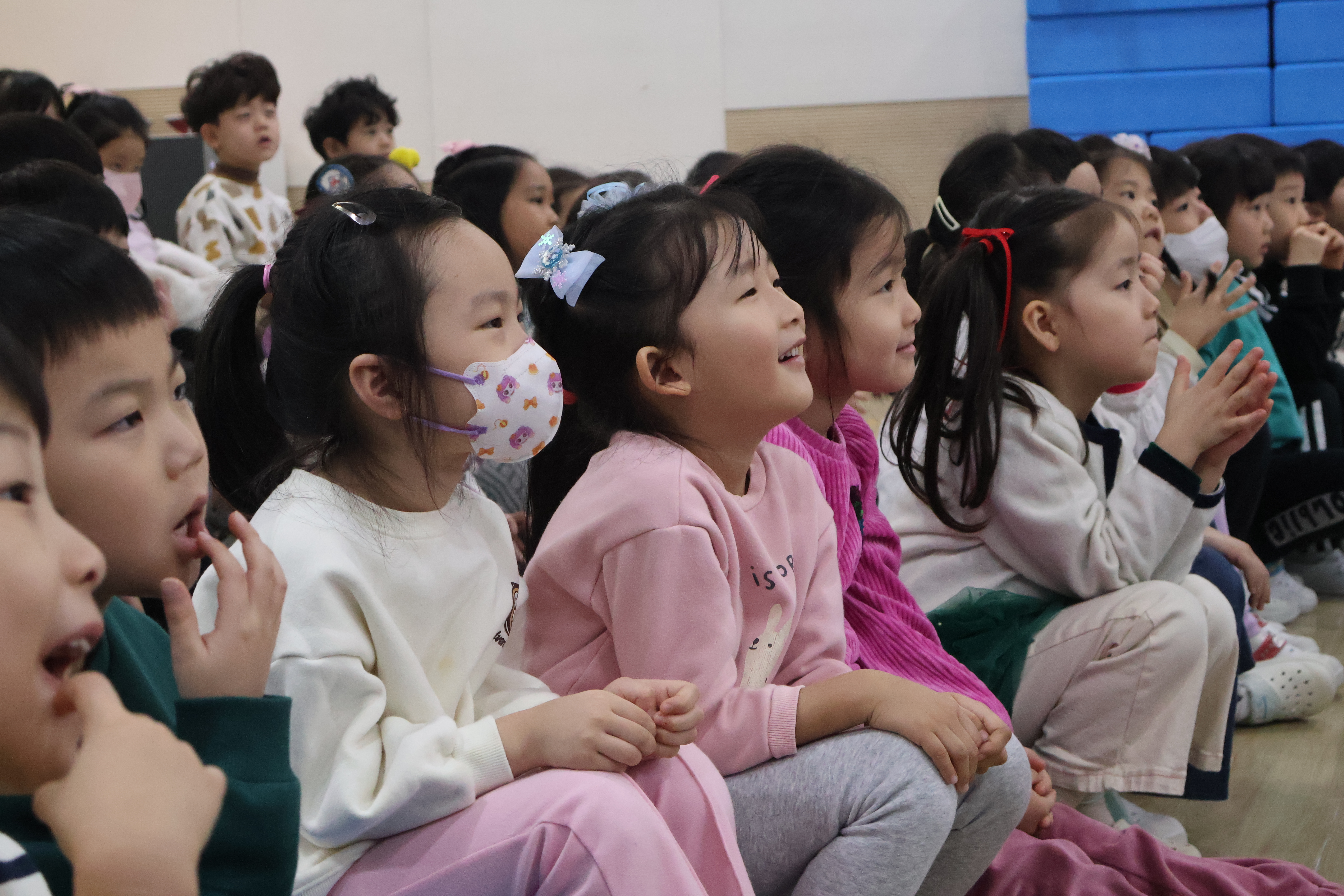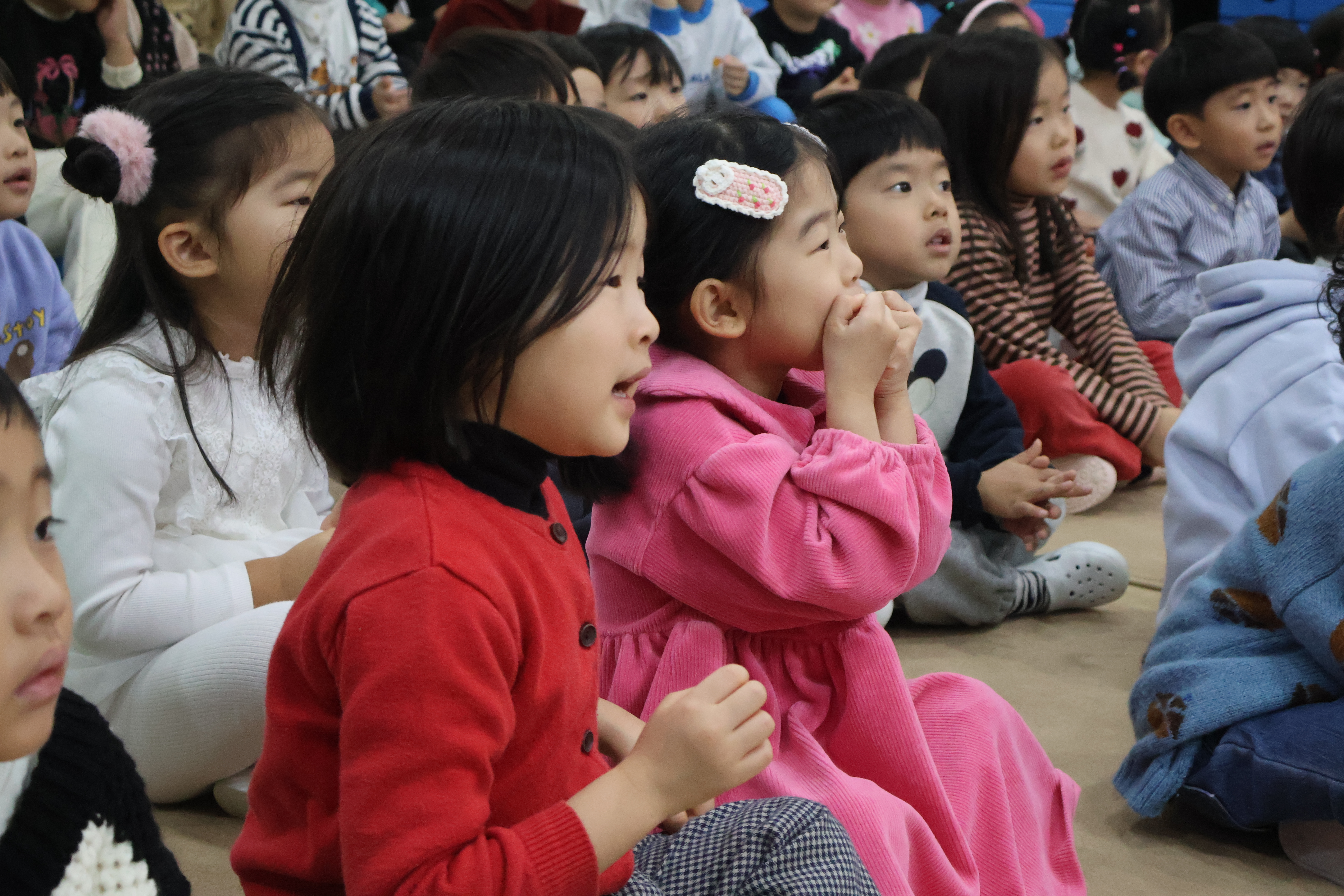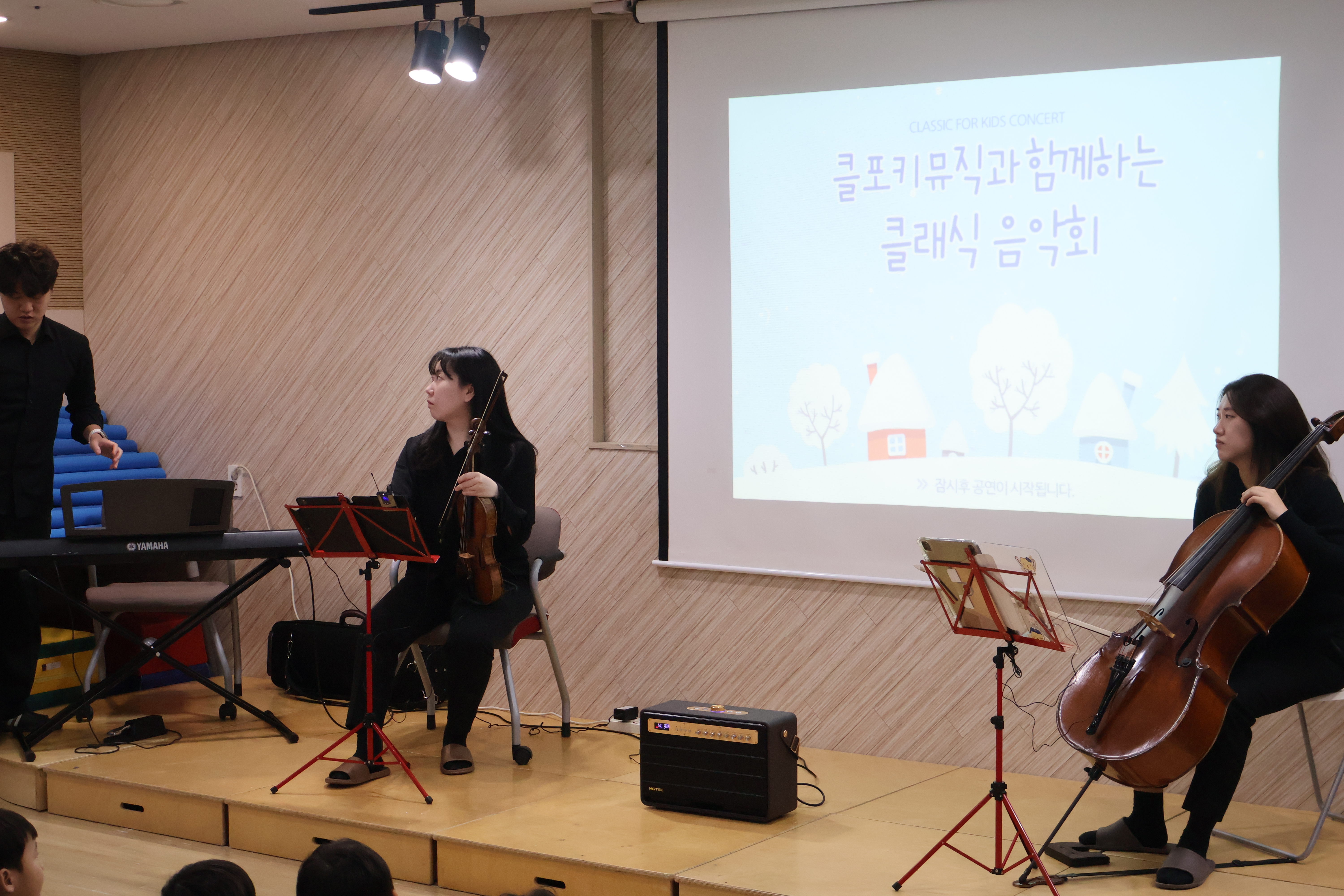 강당에 모여 음악회 시작을 기다리는 어린이들!