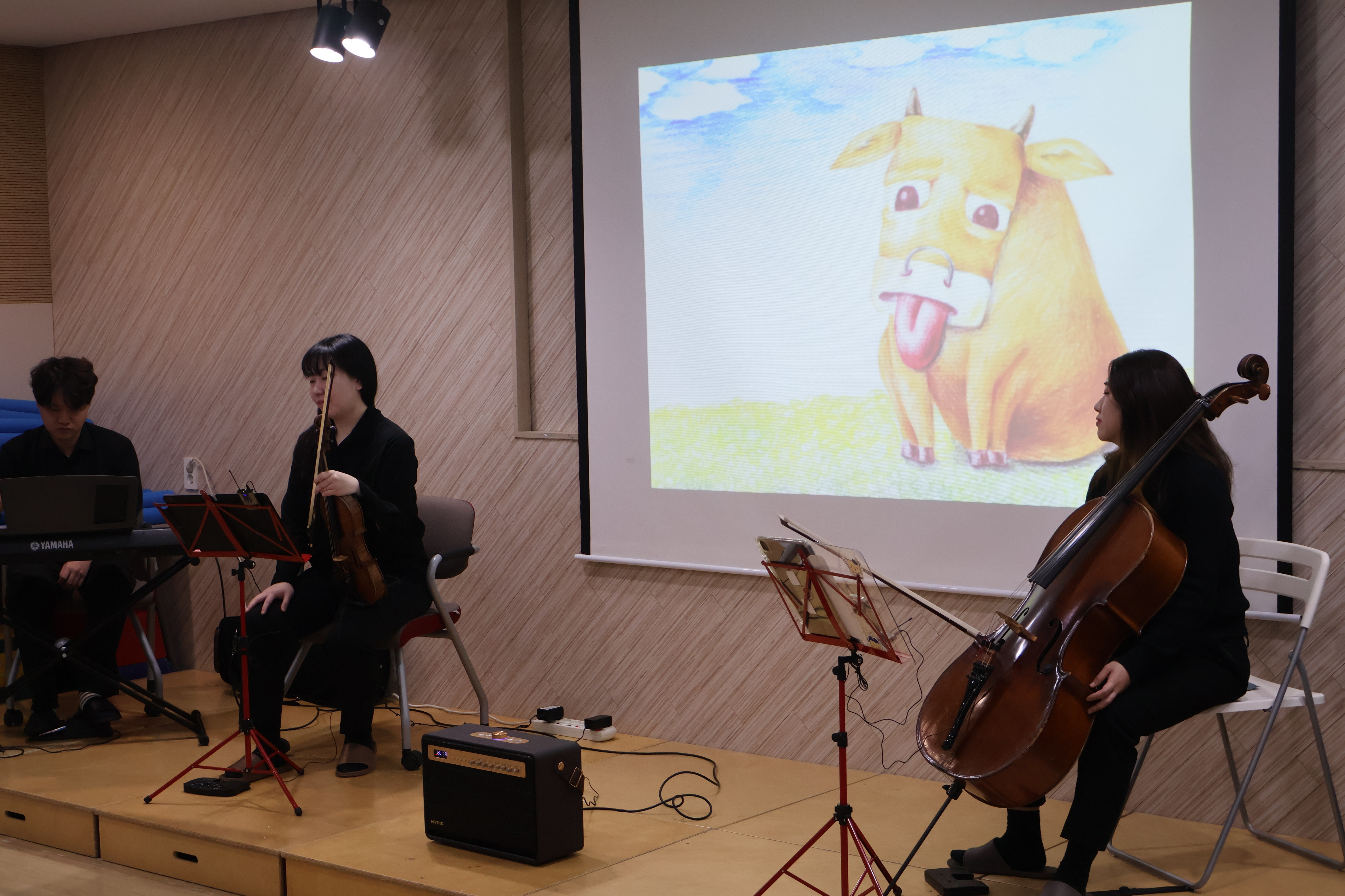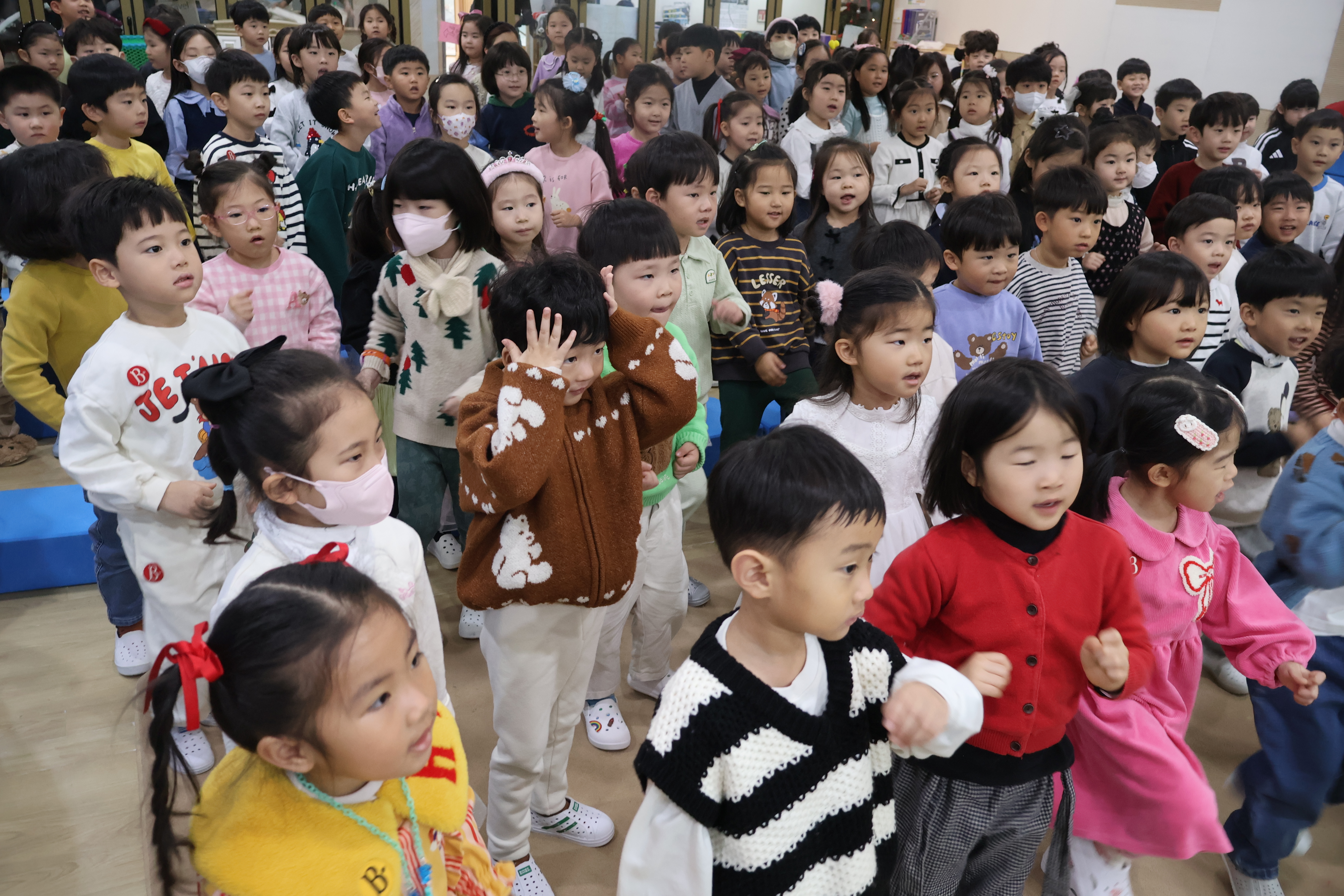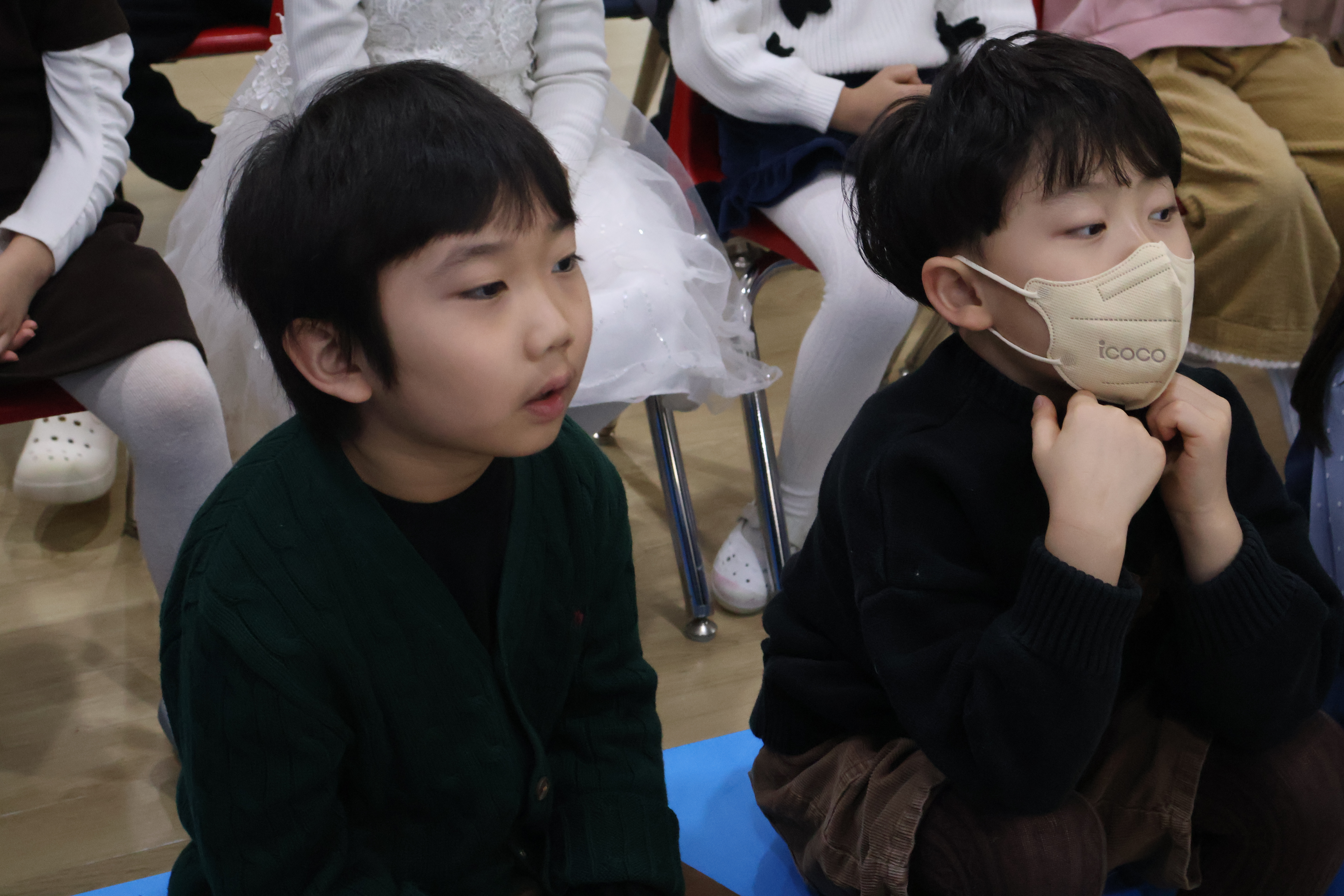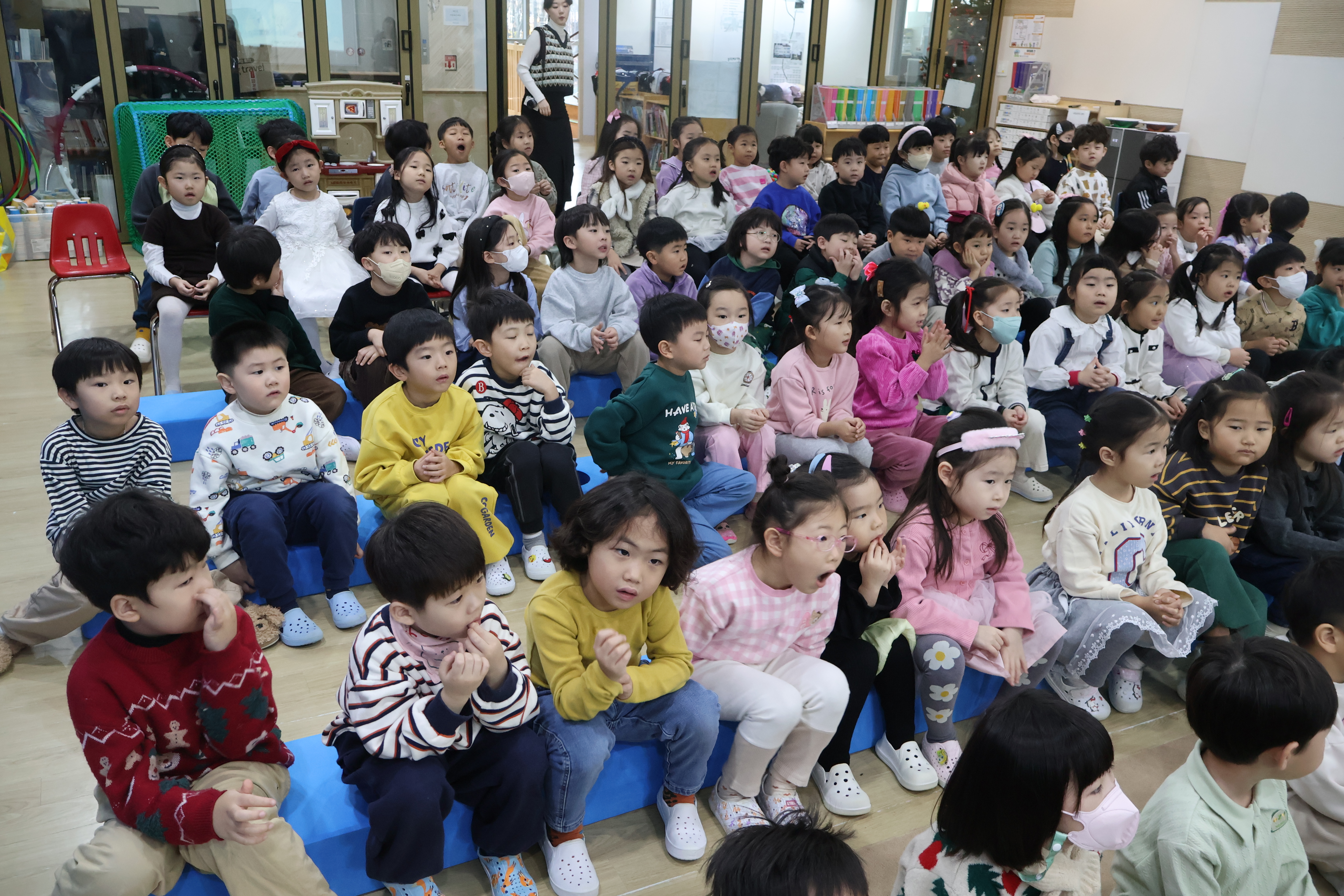 강당에 모여 음악회 시작을 기다리는 어린이들!
